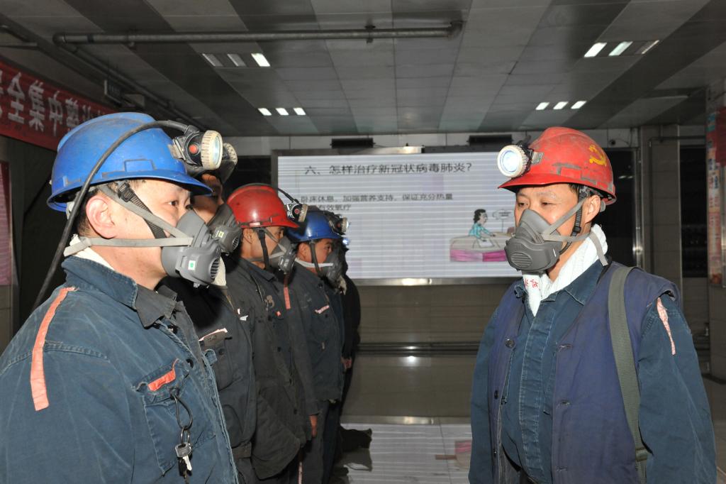 “大家工作期間嚴(yán)禁摘口罩,把工作服扣好不要著涼,特殊時(shí)期大家要照顧好自己的身體,這樣才能多出煤,支援礦井建設(shè)”綜采一區(qū)區(qū)長李德彥在班前會上關(guān)切的告訴每一名職工。