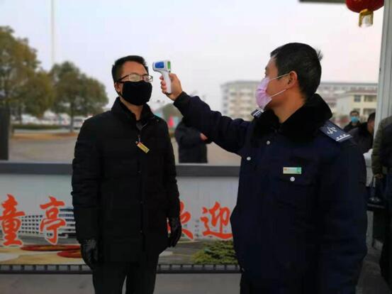 “董部長,請下車測體溫。”物業(yè)分公司部長董昌軍剛把車開到該處機(jī)關(guān)大門口,就被保衛(wèi)人員楊瑞廷攔下了。“你們頂頭上司你也敢攔?”旁邊有人打趣道。“一車一檢,一人一登記、測體溫,我們是按門衛(wèi)制度辦事,堅(jiān)決不能漏過一車一人,不是假期值班人員,其他人現(xiàn)在還不讓進(jìn)呢。”楊瑞廷解釋說。