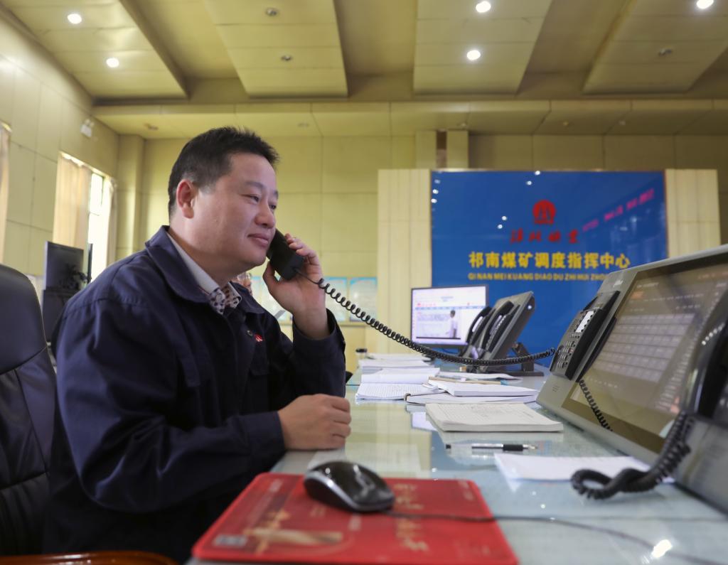 調度員余勇敢正在接聽井下生產電話?!耙獓栏衤鋵嵉V主要領導的要求,淡化節日氛圍,抓好安全生產,我們是礦安全生產的中樞,更是不能有絲毫大意?!?/p>