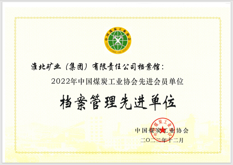 淮北礦業集團榮獲“2022年度煤炭行業檔案工作先進單位”稱號