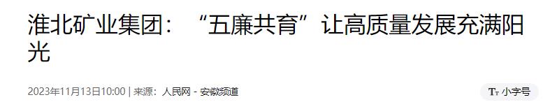 《人民網(wǎng)》:淮北礦業(yè)集團(tuán)“五廉共育”讓高質(zhì)量發(fā)展充滿陽(yáng)光