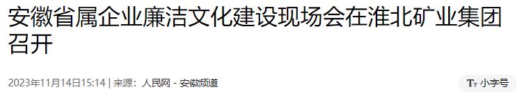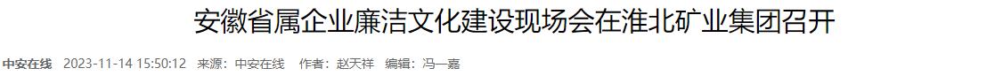 媒體專題報道:安徽省屬企業(yè)廉潔文化建設(shè)現(xiàn)場會在淮北礦業(yè)集團召開