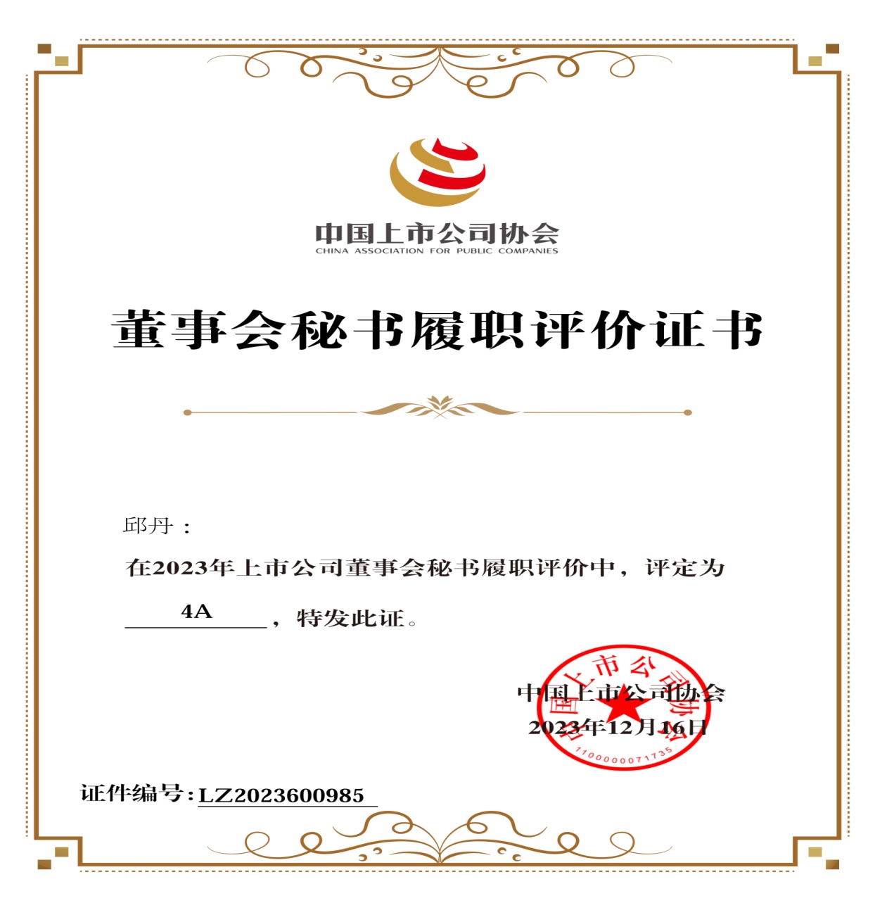 繼淮北礦業(yè)榮獲中國上市公司協(xié)會(huì)“2023年上市公司董事會(huì)優(yōu)秀實(shí)踐案例”后,近日中國上市公司協(xié)會(huì)“2023上市公司董事會(huì)秘書履職評(píng)價(jià)”“2023上市公司董辦最佳實(shí)踐創(chuàng)建活動(dòng)”結(jié)果先后發(fā)布,淮北礦業(yè)集團(tuán)黨委常委,淮北礦業(yè)副總經(jīng)理、董事會(huì)秘書邱丹連續(xù)兩年榮獲董事會(huì)秘書履職4A評(píng)級(jí),證券投資部首次榮獲董辦優(yōu)秀實(shí)踐案例。