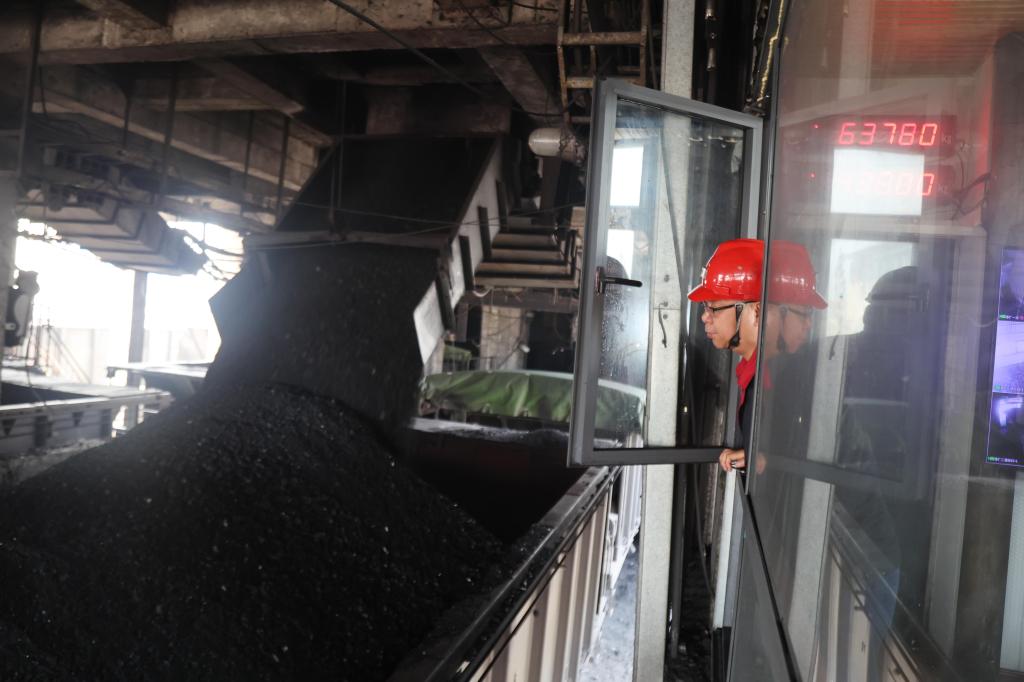 圖為該礦供應(yīng)銷售部職工呂運賀正在監(jiān)裝原煤外運裝車情況。