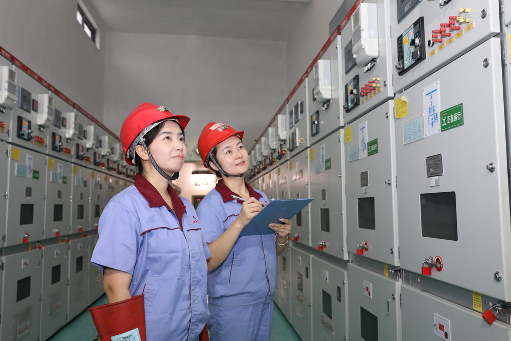 該礦保運區(qū)35KV變電女工謝妍妍、張海玲進(jìn)行崗位操作。