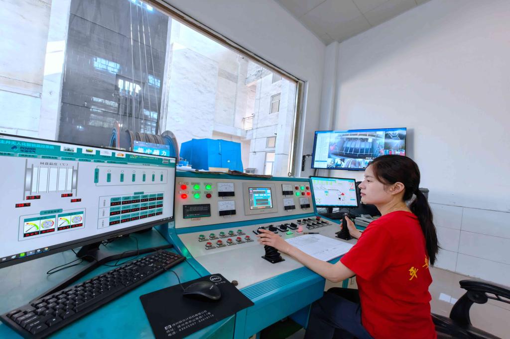 圖為保運區(qū)絞車司機(jī)董平正在操作運行主井絞車