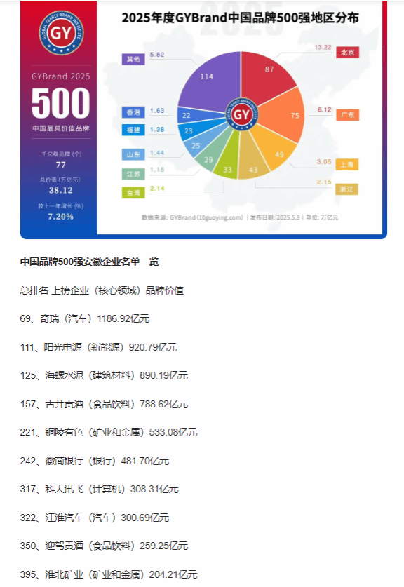 近日,GYBrand全球品牌研究院發(fā)布2025年度中國500最具價(jià)值品牌名單,淮北礦業(yè)以品牌溢價(jià)204.21億元,再次榮登榜單,位列395位。